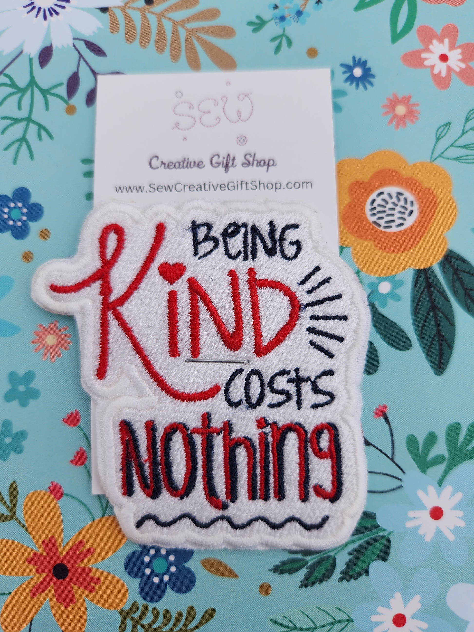 Brighten up any outfit with our "Being kind costs nothing" embroidered iron-on patch! Spread goodwill and positivity while adding a unique touch to your clothing. Easy to apply and long-lasting, this patch is a must-have for anyone who believes in the power of kindness.